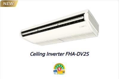 เครื่องปรับอากาศแบบแขวนใต้ฝ้า (Ceiling) ประหยัดไฟเบอร์ 5 ด้วยระบบอินเวอร์เตอร์แบบสวิงที่ให้ความเย็นเร็วและคงที่ ลดการตัดของคอมเพรสเซอร์ ใช้สารทำความเย็น R32 ให้ประสิทธิภาพการทำความเย็นสูงและไม่ทำลายโอโซน กำลังลมแรง แขวนใต้ฝ้าได้สูงสุดถึง 4.3 เมตร สวิงขึ้น-ลงอัตโนมัติและกระจายลมแยกซ้าย-ขวาอิสระแบบแมนวล มีแผ่นกรองอากาศเคลือบสารยับยั้งแบคทีเรียเพื่อสุขภาพที่ดี ติดตั้งง่ายบางสุดเพียง 23.5 ซม. ติดตั้งได้แม้ในพื้นที่แคบโดยเว้นระยะซ้าย-ขวาเพียง 3 ซม. |